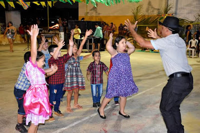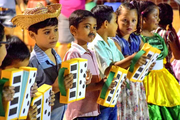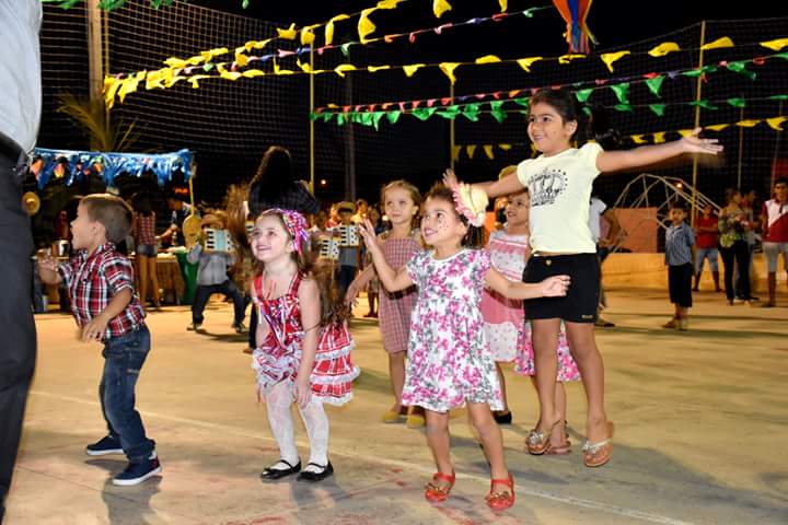 Pela manhã com a presença das crianças do Criança Feliz, Brilho no Olhar e SCFV, com muita música ao vivo, comidas típicas e diversão para toda criançada.