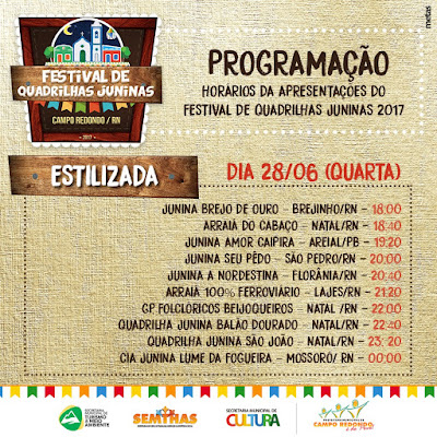 VAI COMEÇAR O FESTIVAL DE QUADRILHAS DE CAMPO REDONDO 2017