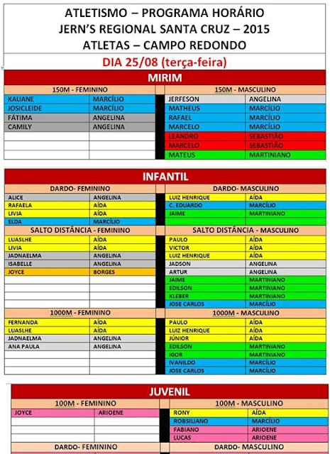 Senhores diretores, professores e alunos observem os dias que cada atleta vai competir e divulguem em suas escolas.
